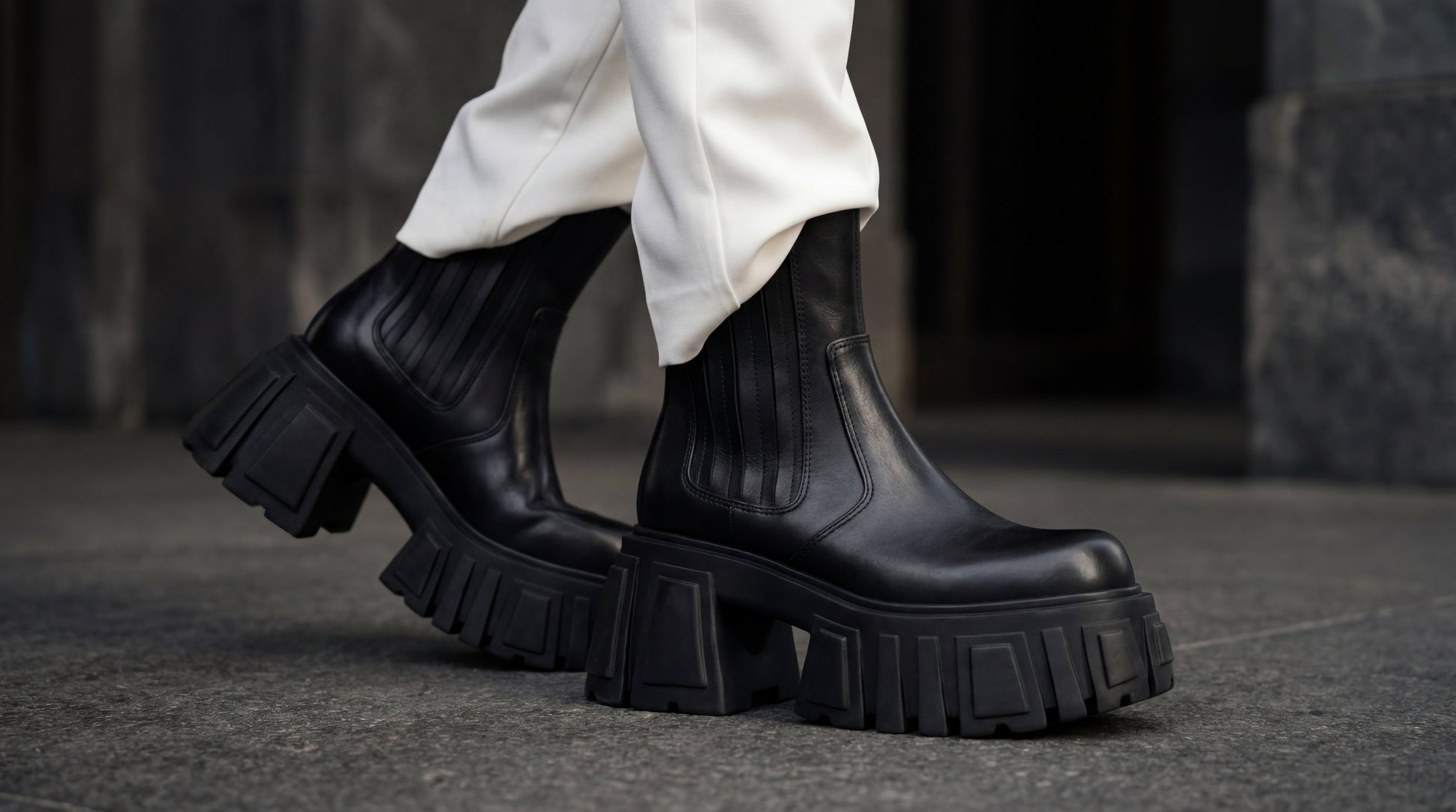 Inspirado en el brutalismo arquitectónico y la sofisticación cosmopolita de la Via Montenapoleone, el Chelsea Volterra es una oda al maximalismo elegante. Este diseño no es simplemente un calzado, es una pieza de declaración que fusiona la tradición artesanal de la silueta Chelsea con una visión futurista y audaz.